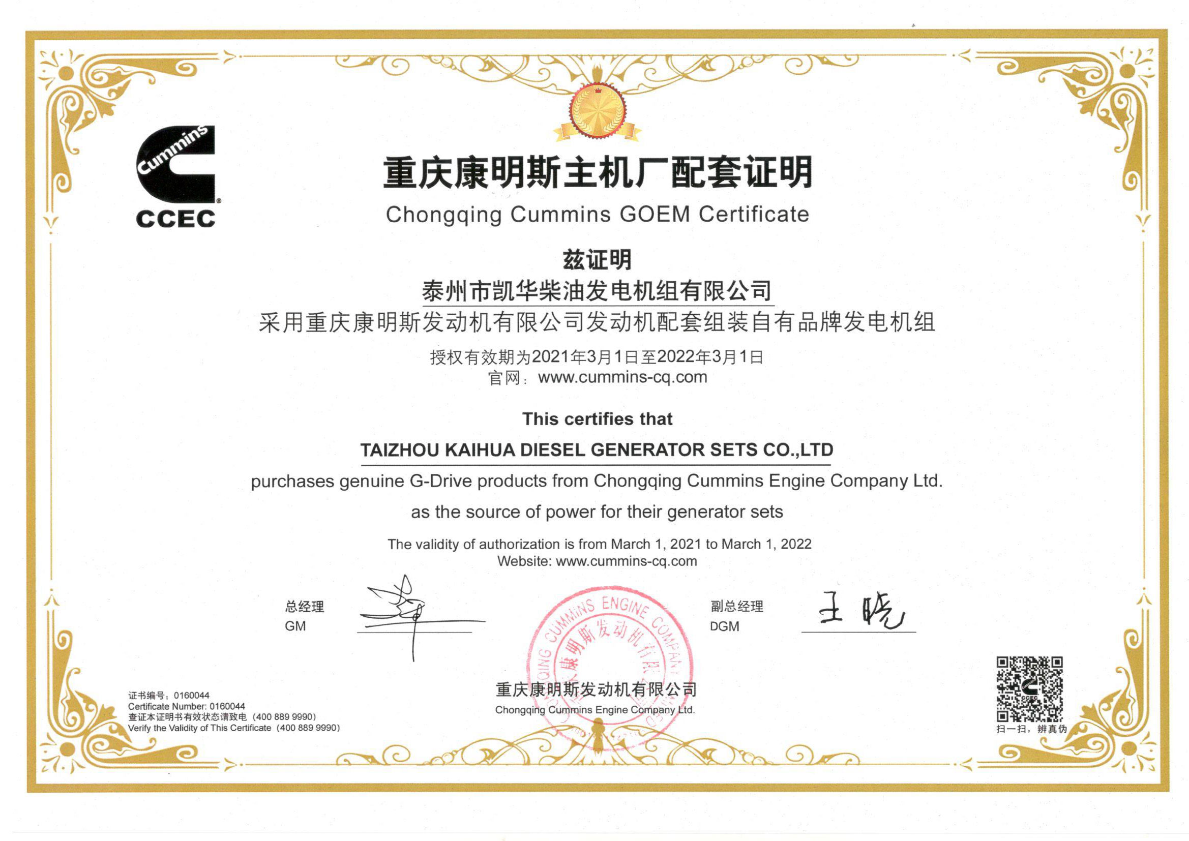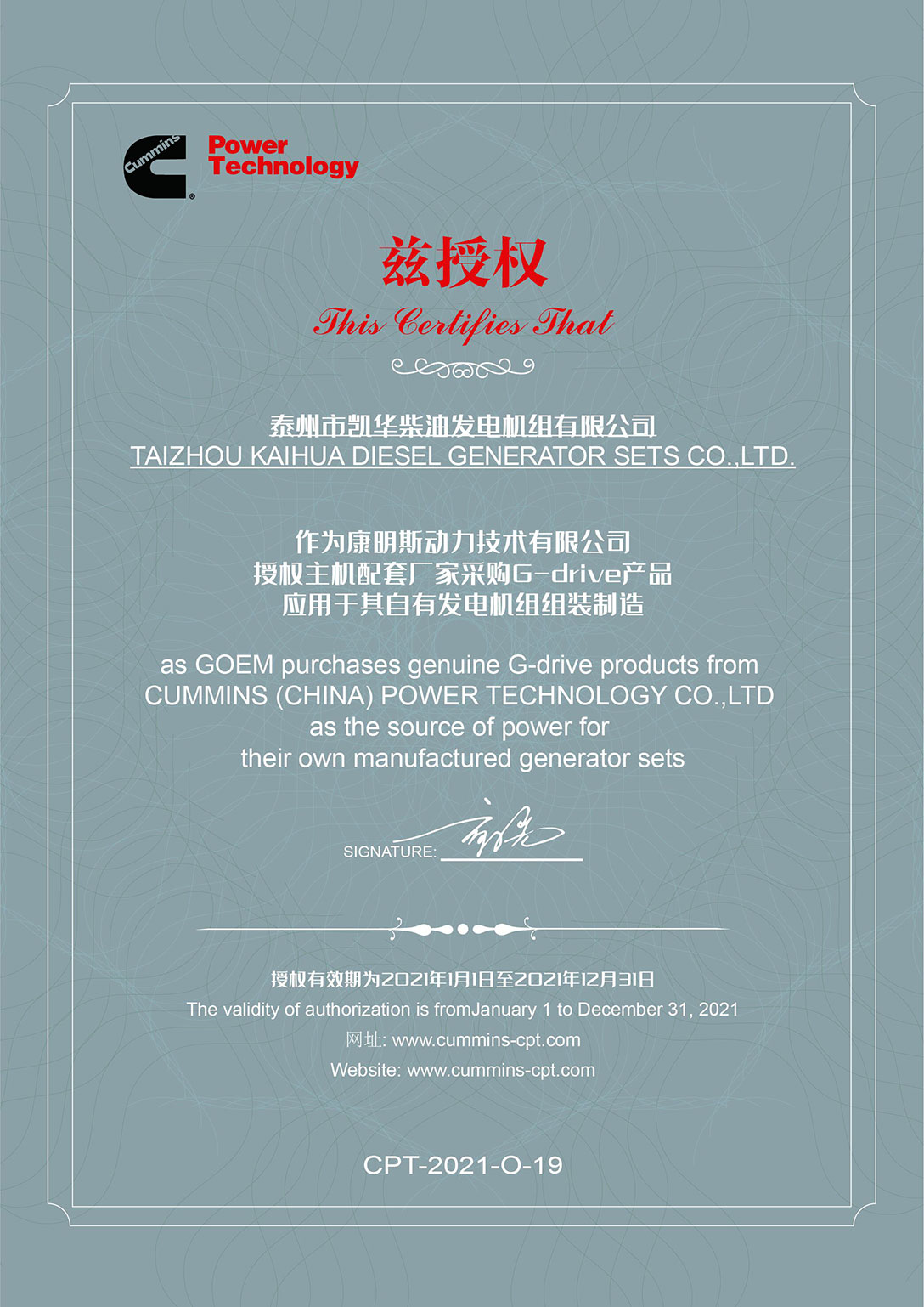 泰州市凱華柴油發(fā)電機組有限公司創(chuàng)建于2003年,是一家集柴油發(fā)電機組燃氣發(fā)電機組的研發(fā)、生產(chǎn)、銷售為一體的高新技術民營企業(yè),公司座落于“漢唐古郡,淮海名區(qū)”,具有“鳳凰城”美稱的祥泰之州——江蘇省泰州市,地處中國經(jīng)濟最發(fā)達的長三角經(jīng)濟圈,水陸空立體交通,地理位置十分優(yōu)越。公司目前注冊資本金11800萬元人民幣,生產(chǎn)基地占地六十畝,現(xiàn)有各類高素質(zhì)員工一百多名,專業(yè)技術人員達46人,其中高級技術人員16人,年銷售額近6億元。 公司主營產(chǎn)品:3~3000KW陸用柴油發(fā)電機組,15~600KW移動拖車電站,12~1000KW船用應急柴油發(fā)電機組,各種靜音型、中高壓、多機并聯(lián)、燃氣等特種機組以及進口系列柴油發(fā)電機組,可滿足不同客戶的一切電力需求,還可滿足用戶不同電壓、不同頻率的要求。凱華公司是康明斯品牌的授權代理商,專業(yè)生產(chǎn)供應康明斯柴油發(fā)電機組。